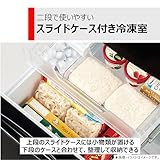 狭いキッチンでも場所を取らず、しっかり食材を収納できます。冷凍庫と冷蔵庫の収納スペースがバランス良く配置されているため、使い勝手も抜群です。